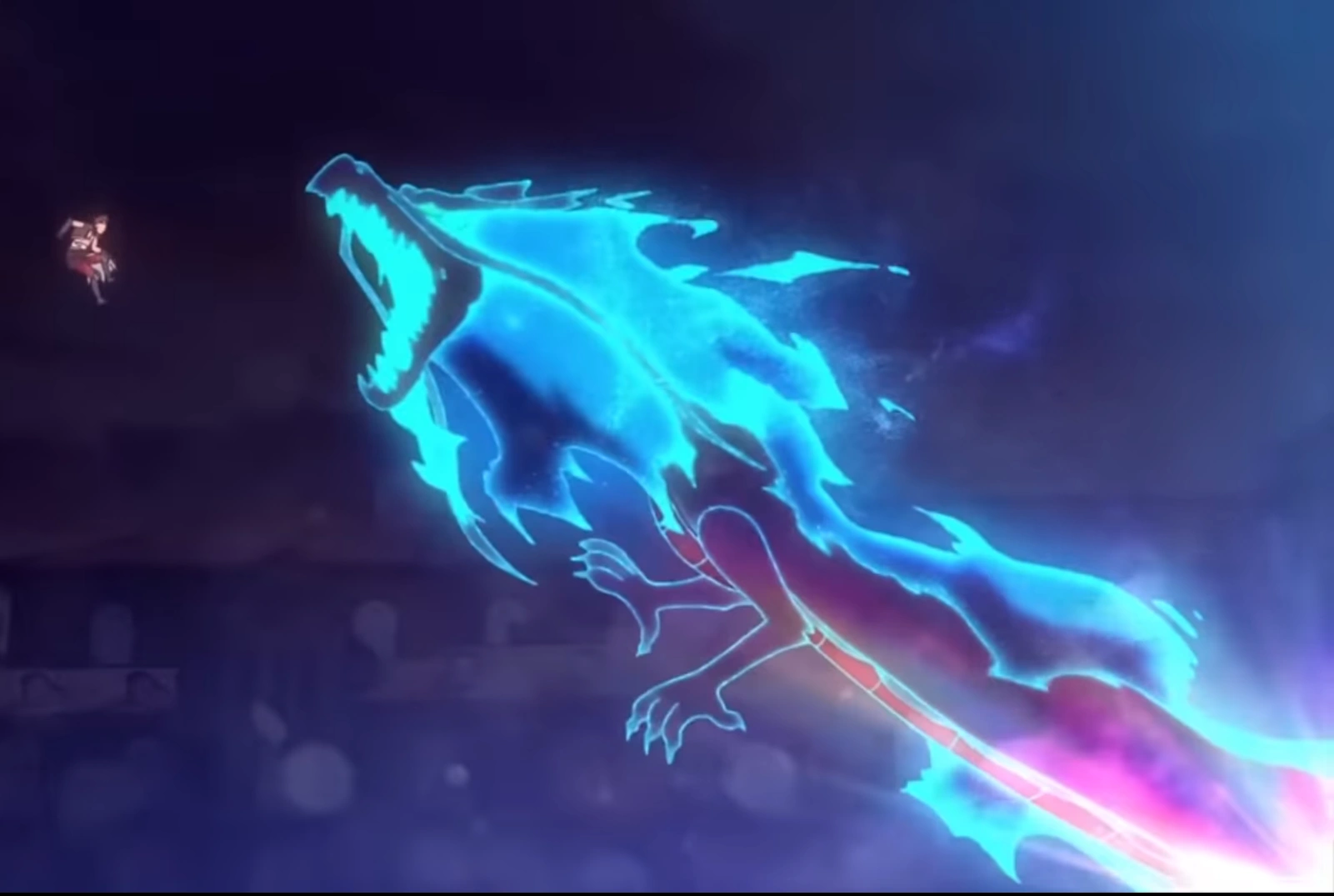 | Dragon Rises from the Sea | An attack skill that launches the user forward quickly, and flings out a water-like dragon with magical energy. Blue waves emanate from the user's spear which gather onto the spear’s tip, and are sent out when attacking a target. [34] Dragon Rises from the Sea | |